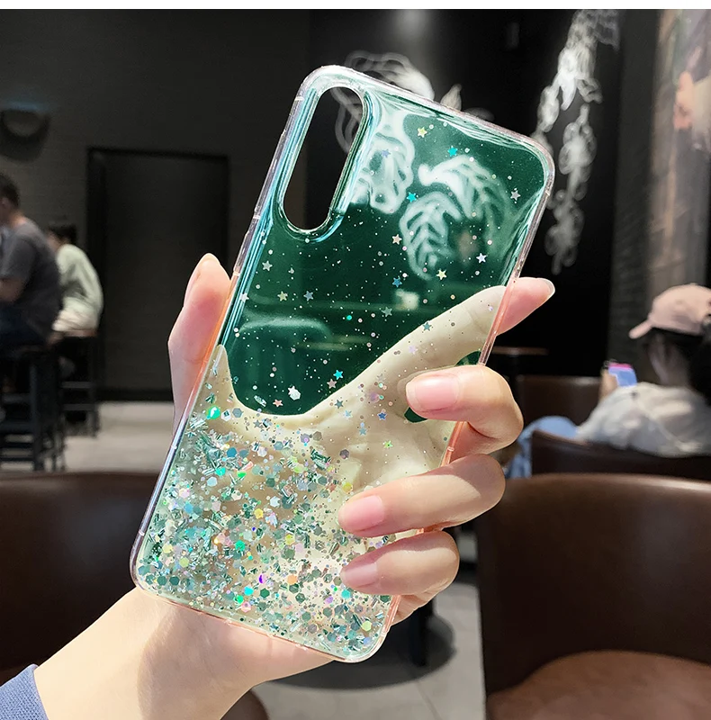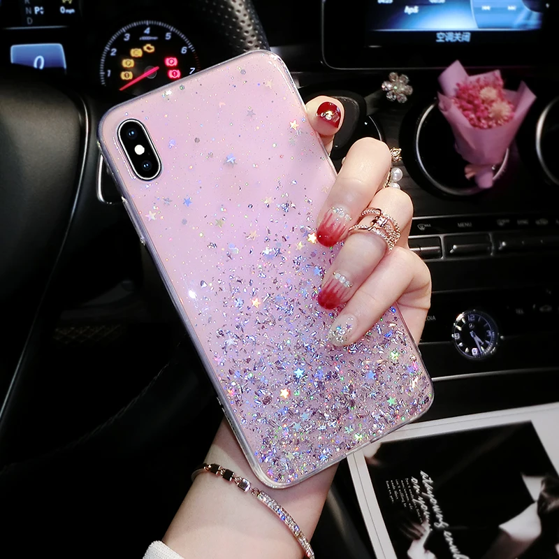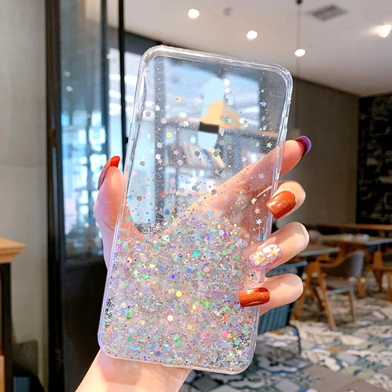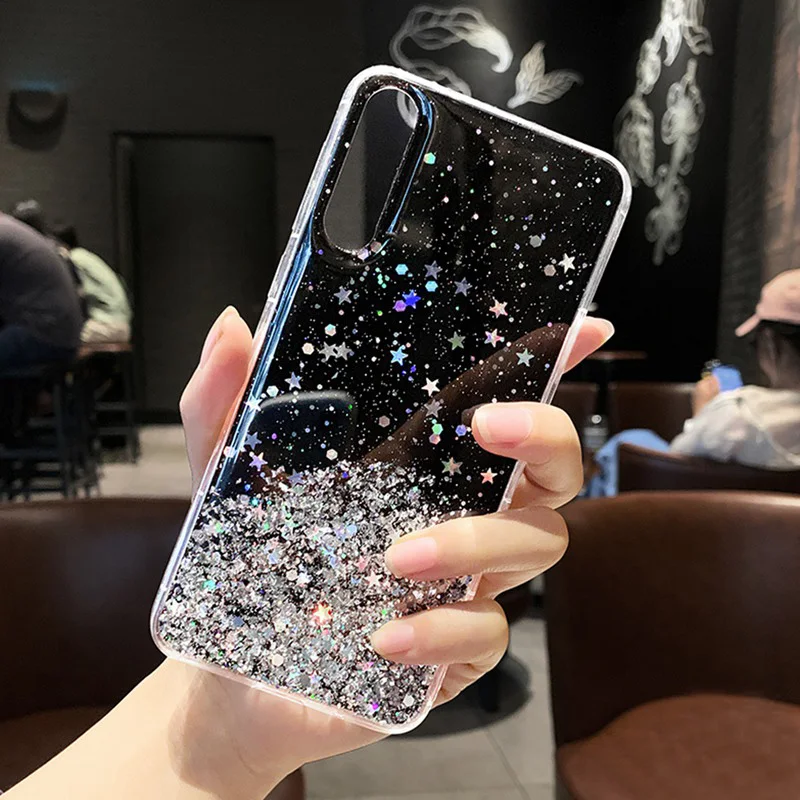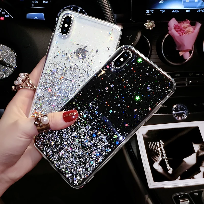 1. Fashion Bling Glitter Stars Transparent TPU Phone Case Soft Back Cover Capa