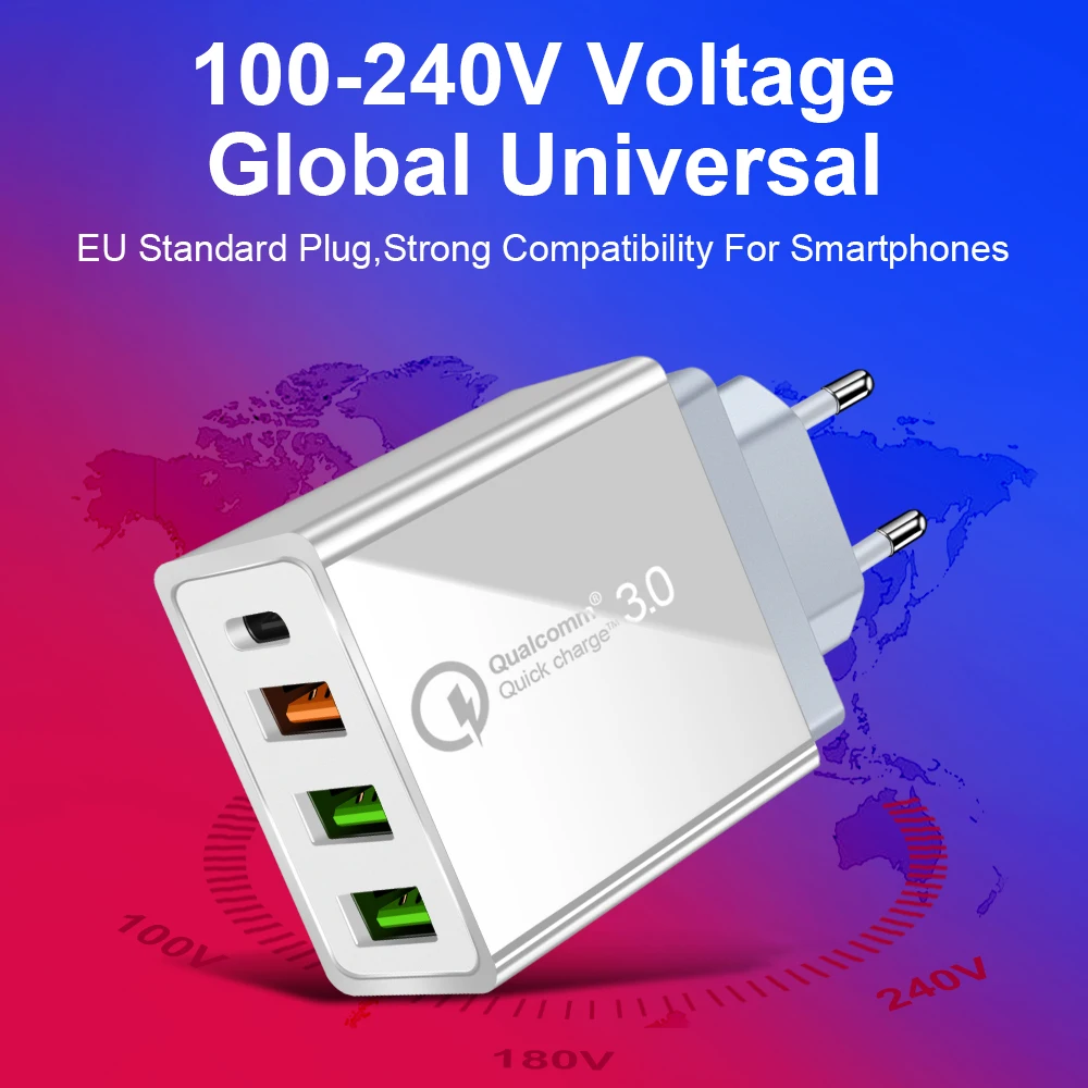 48W USB Quick Charge 3.0 PD Type C USB Charger for Samsung iPhone Huawei Tablet QC 3.0 Fast Wall Charger US EU UK Plug AdapterBuy Now On Aliexpress