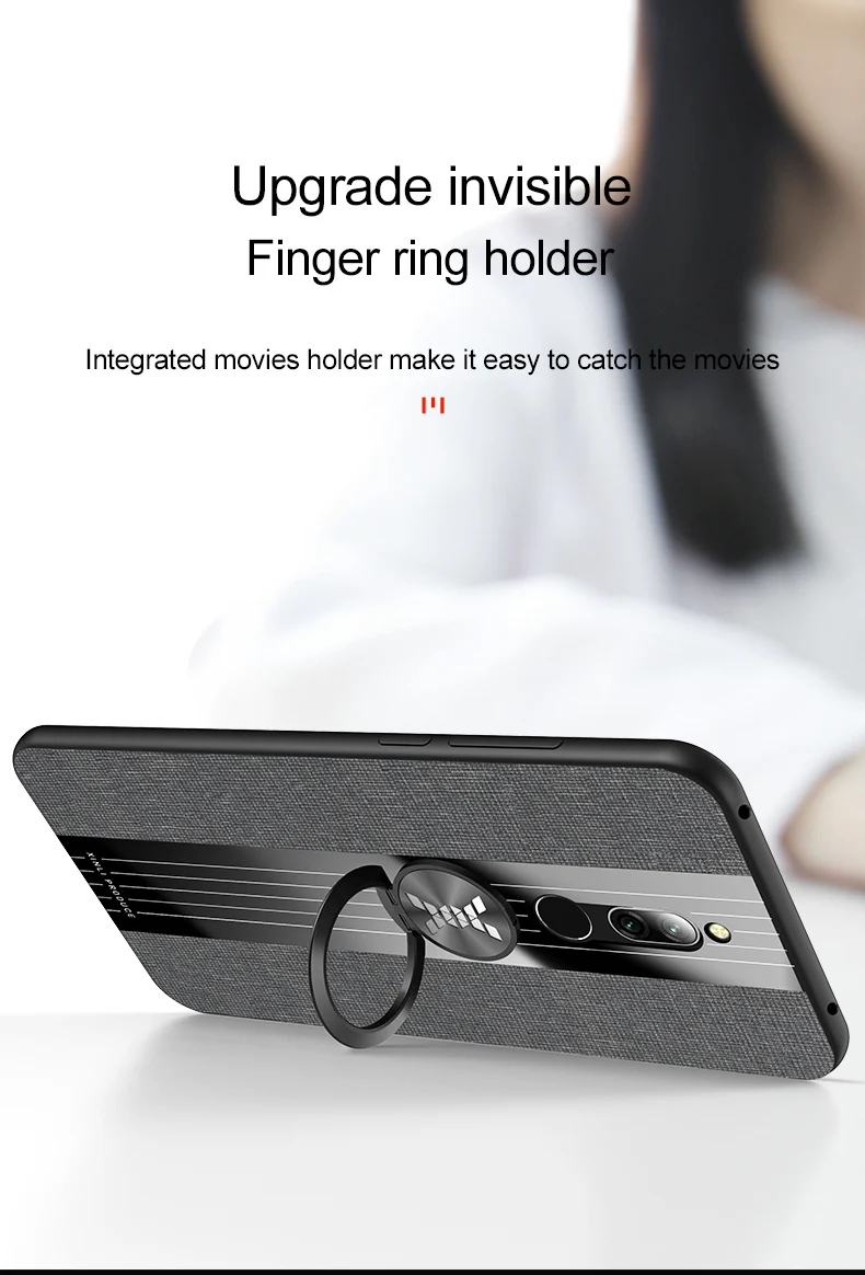 | For Xiaomi Redmi 8 Case Redmi8 Ring Holder Fabric Hard Cover Soft Frame Cloth Phone Case For Xiomi Xiaomi Redmi 8A 8 A |